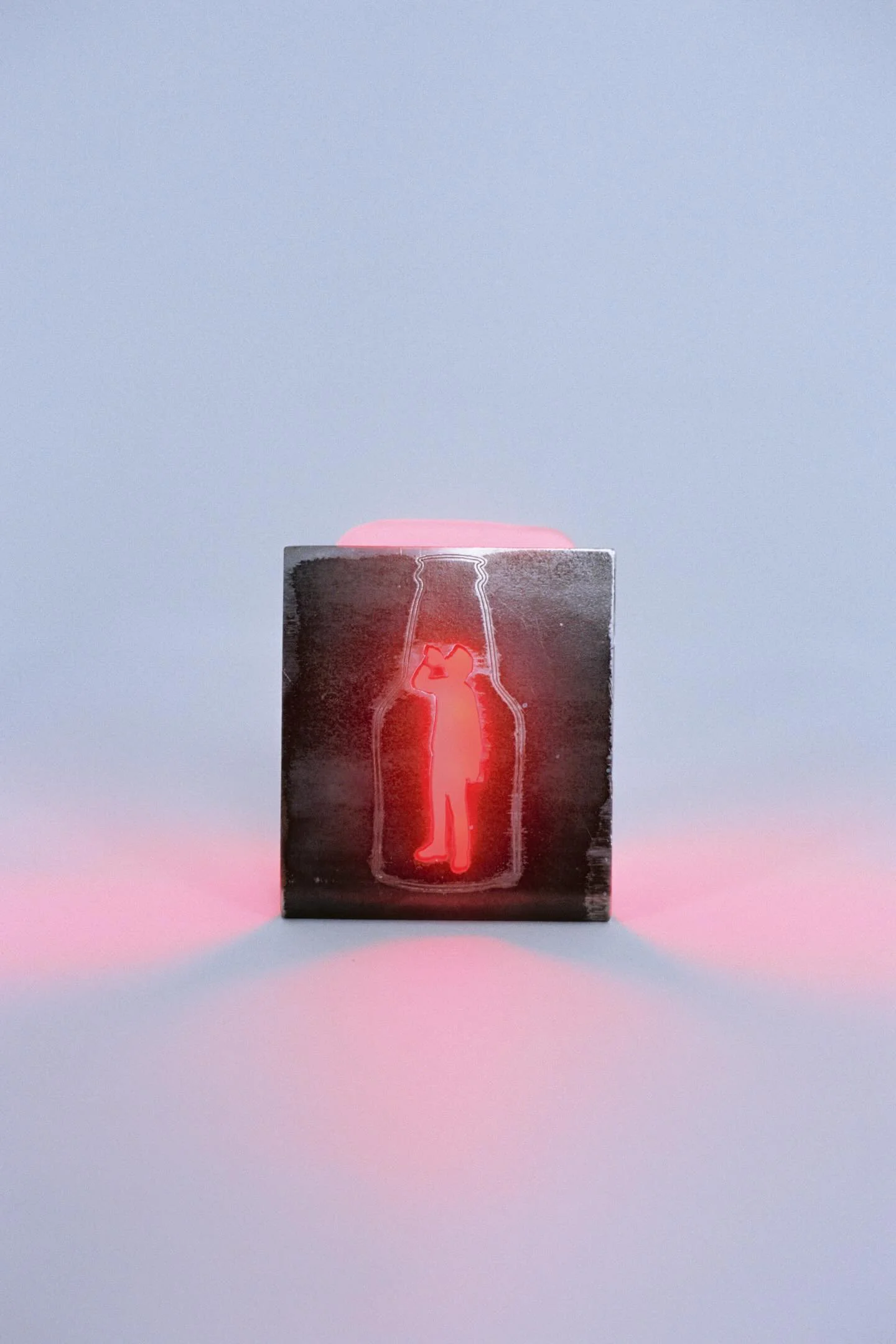 Photography of a metal sculpture named “In The Bottle”, this is a plasma cut design made with a vector artwork.